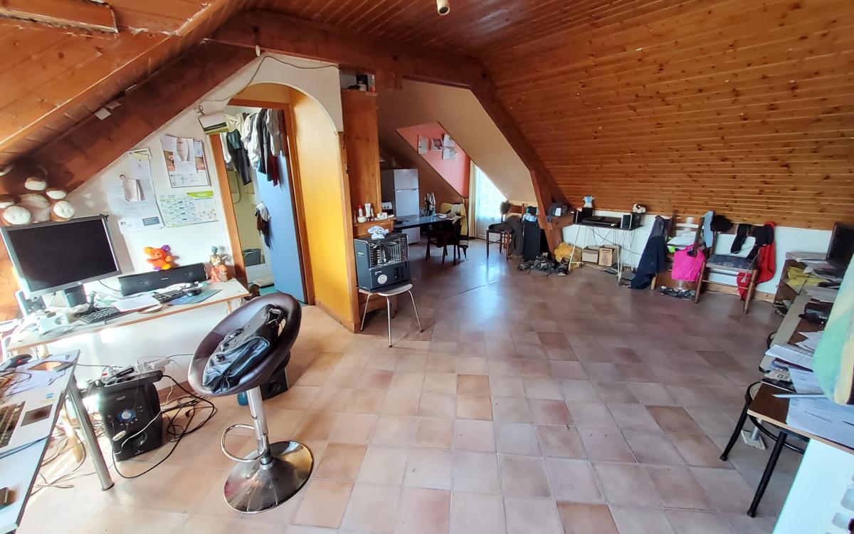 Logement comprenant un séjour avec cuisine ouverte, une chambre et une salle d'eau avec wc. Le tout sur un terrain à l'avant et à l'arrière de la maison d'une superficie de 777m².