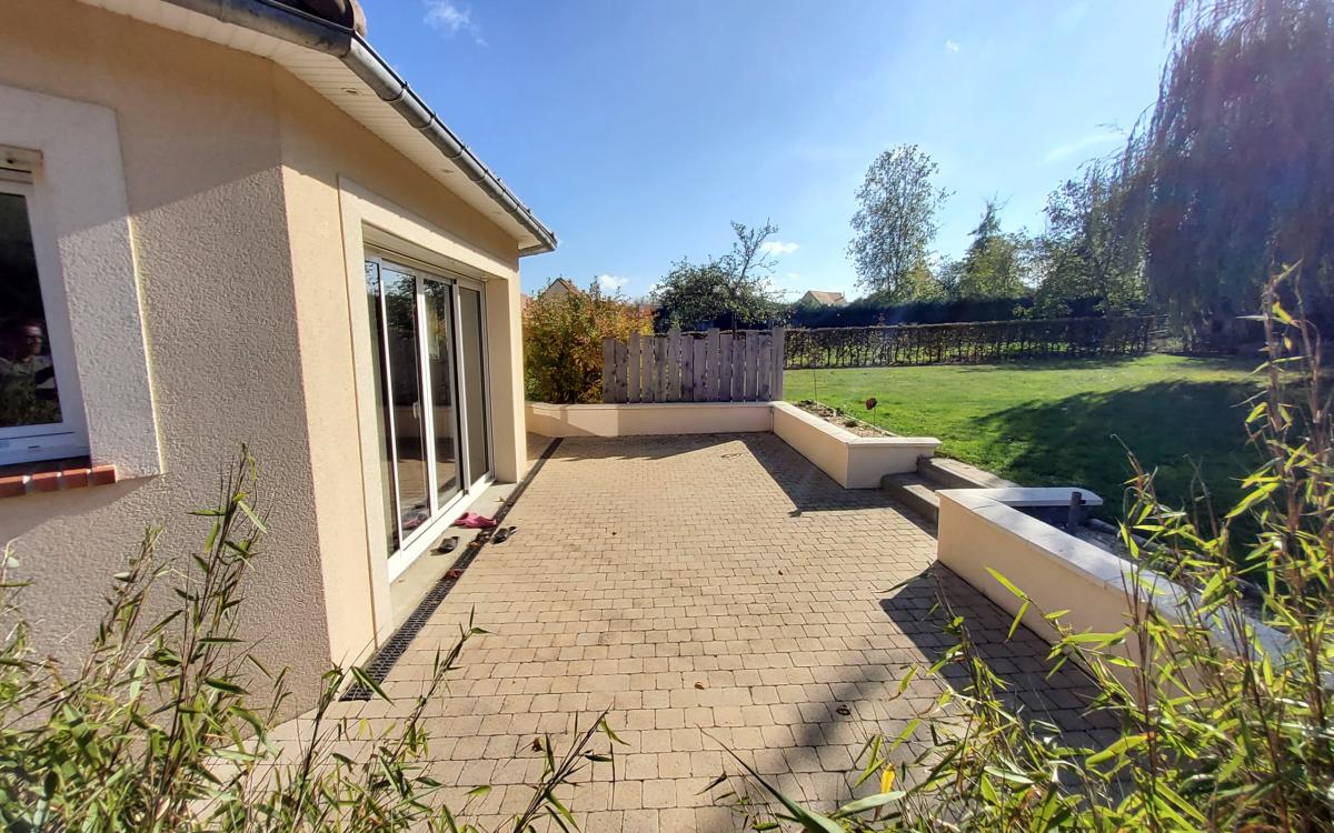 Terrain clos et arboré de 1406 m², garage supplémentaire indépendant.