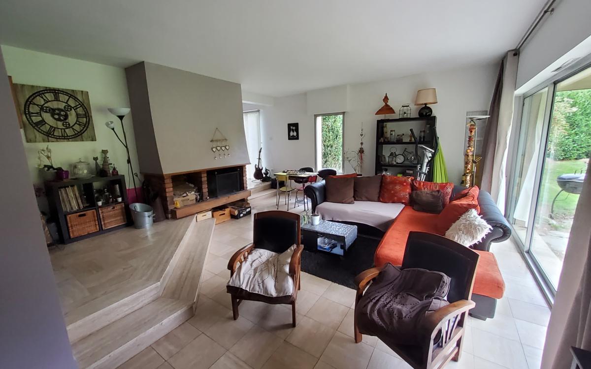 Au rez-de-chaussée : cuisine, salon avec cheminée, salle à manger, chambre, bureau, salle de bains et W.C, garage.