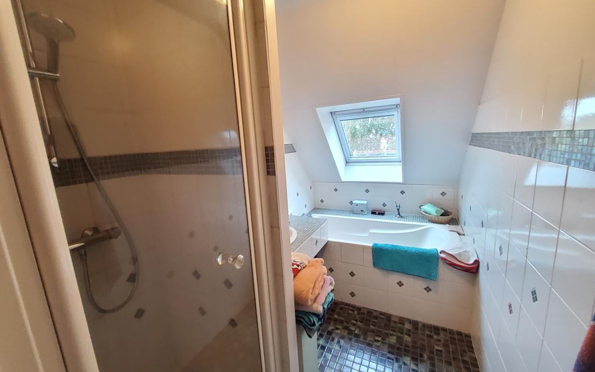 A l'étage : salle de jeux, quatre chambres, salle de bains, W.C, buanderie.